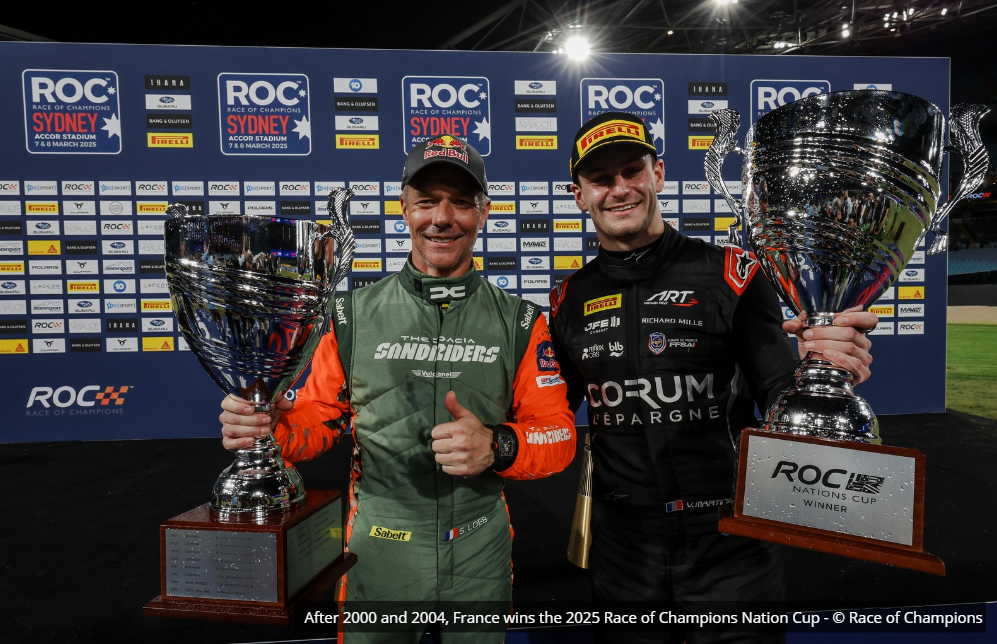 It’s in the Accor Stadium in Sydney that the first day of the 2025 Race of Champions (ROC) began. The first day always starts with the Nation Cup, meaning a pairing of two drivers competing against two others to define who’s the better nation. With six different cars, ten teams faced each other, and France, with Victor Martins and Sébastien Loeb, managed to take the win.